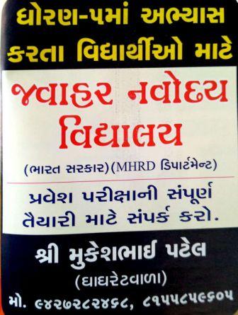 ધોરણ ૫ માં અભ્યાસ કરતાં વિદ્યાર્થી માટે પ્રવેશ પરીક્ષા માટે (MHRD) ડીપાર્ટમેંટ