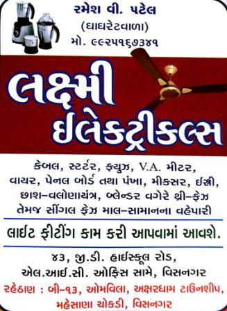 ( 1 ) લક્ષ્મી ઇલેક્ટ્રીકલ્સ - વિસનગર